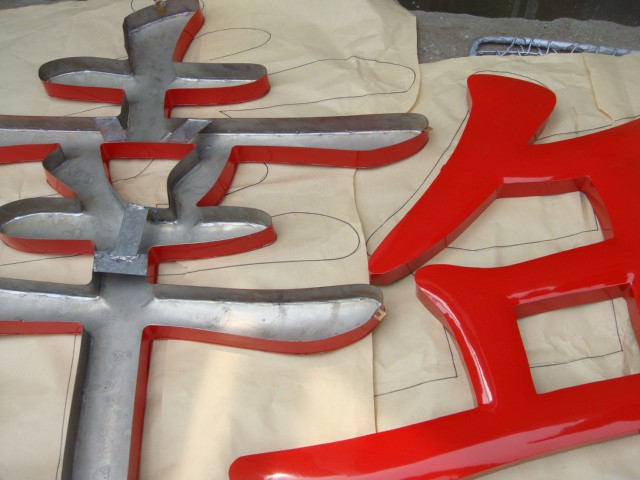 鐵皮烤漆字 鐵皮烤漆字可以根據(jù)字面意思分為兩部分進行理解,第一部分是鐵皮,第二部分是烤漆。鐵皮烤漆由于顏色多變,可以根據(jù)客戶的要求制作不同的顏色而受到廣大消費者的喜愛??梢允羌で檠笠绲募t色,可以是明亮的黃色等。 鐵皮烤漆發(fā)光字工藝和不銹鋼發(fā)光字工藝大體相差不多。都是要用機械進行加工。